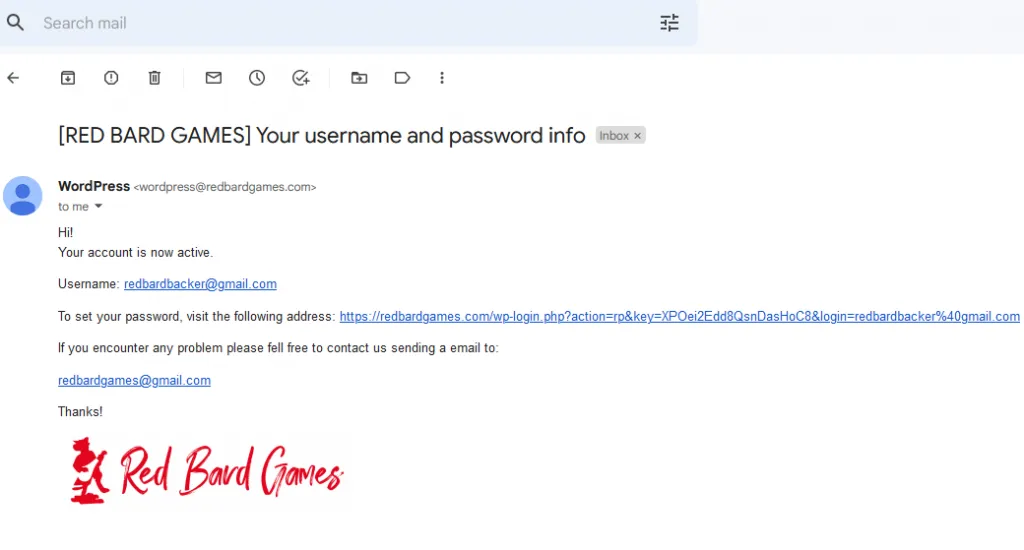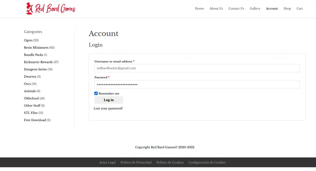 1. Once you have a password, go to “Account” on www.redbardgames.com and log in.
